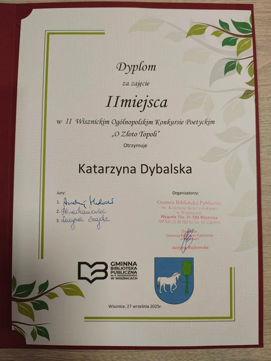 Katarzyna Dybalska - dyrektor dęblińskiej czwórki, laureautką Ogólnopolskiego Konkursu Poetyckiego