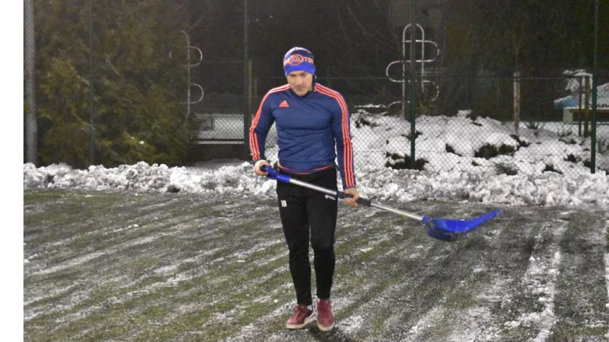 Na zdjęciu Mateusz Nakonieczny popisał się hat-trickiem. Zawodnik Amatora jest liderem najskuteczniejszych w Klasie A. Gdy trzeba było odśnieżyć boisko w Rykach, jako pierwszy ruszył z łopatą!