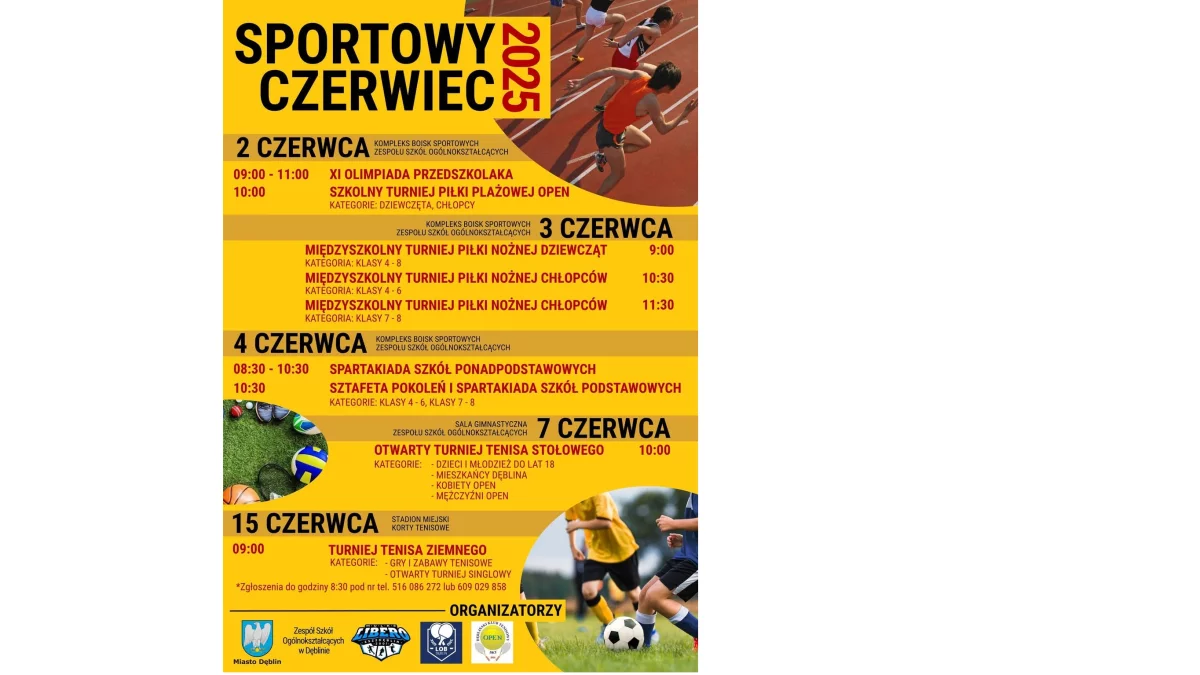 XI Olimpiada Przedszkolaka, Szkolny Turniej Piłki Plażowej Open, Międzyszkolne Turnieje Piłki Nożnej Dziewcząt i Chłopców, Spartakiada Szkół Ponadpodstawowych, Sztafeta Pokoleń oraz Spartakiada Szkół Podstawowych.