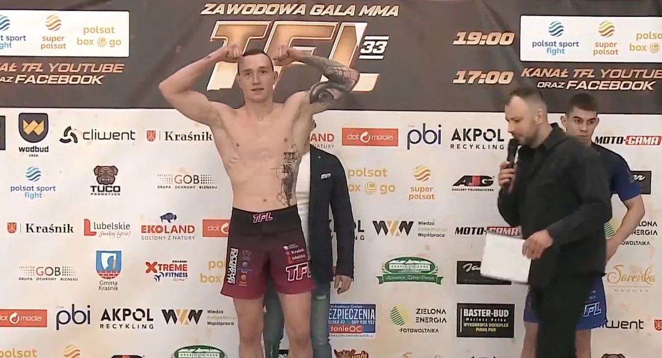 Zawodnik z okolic Ryl zmierzy się ze Stasem Kripetsem z Białorusi, który trenuje w klubie Nemesis Warszawa. Dla obu będzie to debiut. Walka odbędzie się w kategorii lekkiej do 70 kg. Dominik jest reprezentantem Forcy MMA Dęblin oraz MKS-u Lubartów.