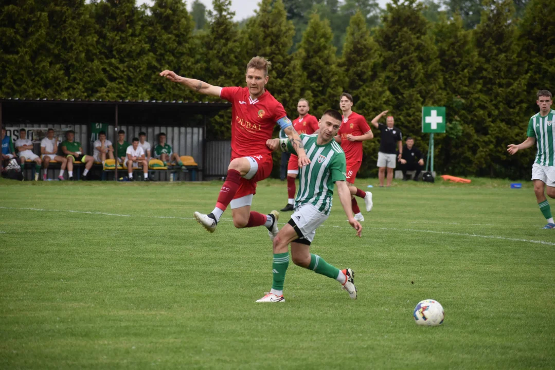 Mecz lidera z liderem przyciągnął na trybuny kilkaset osób. W pierwszej połowie optyczną przewagę mieli miejscowi, ale tuż przed przerwą Kacper Balczyński dał prowadzenie po strzale z kilku metrów, a następnie Dmytro Kostiuk trafił głową po rzucie rożnym.