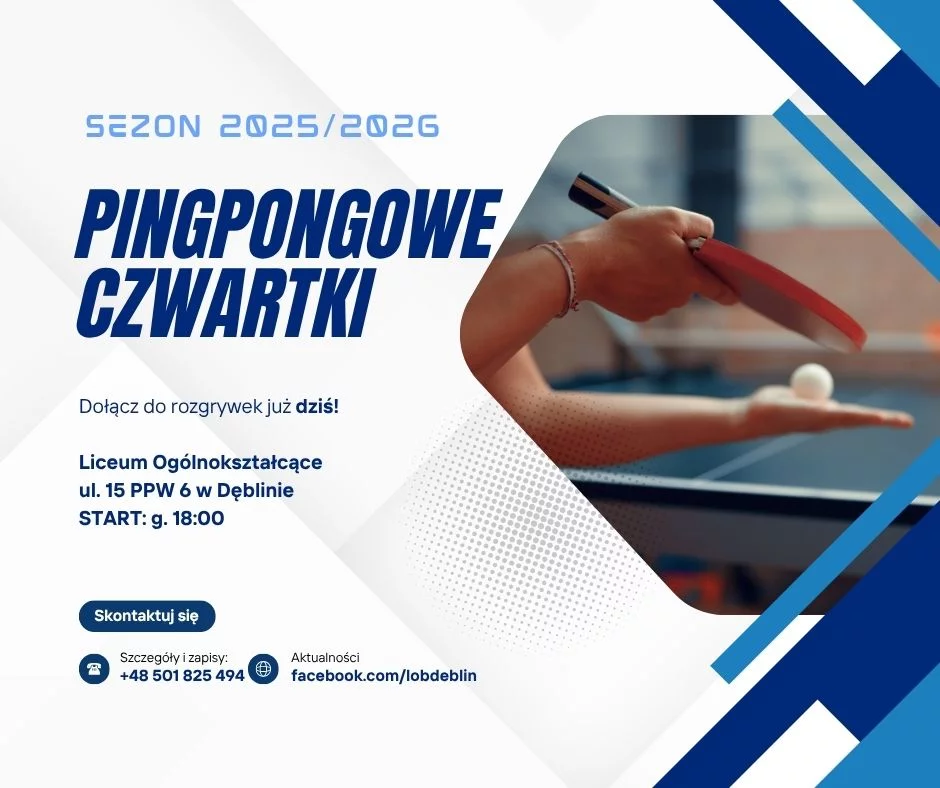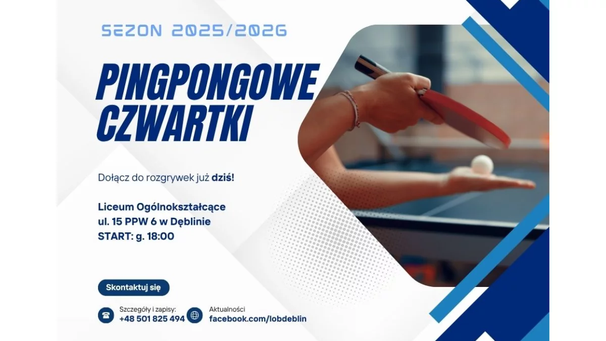 Sezon 2025/2026 zapowiada się emocjonująco, a organizatorzy zapraszają wszystkich chętnych – bez względu na wiek czy poziom zaawansowania. Miejsce spotkań pozostaje bez zmian. Rozgrywki odbywać się będą w Liceum Ogólnokształcącym przy ul. 15 PPW 6 w Dęblinie. Pierwsze odbicie piłeczki już o godzinie 18:00!