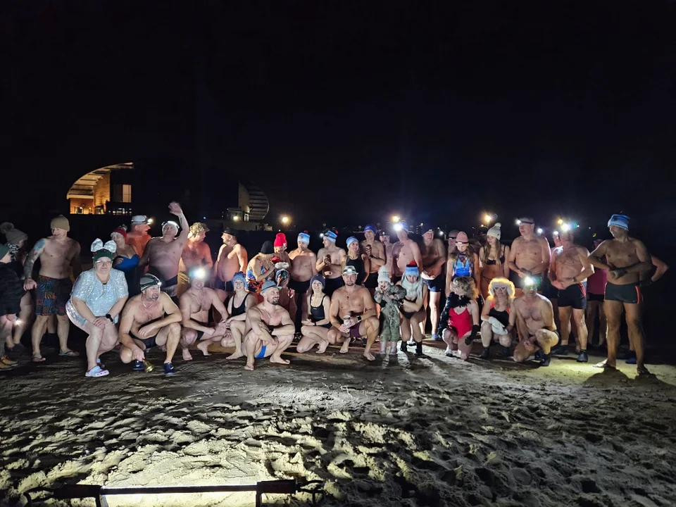 I to zimnej. Pierwszego nad 2025 roku nad starorzeczem Wisły w Stężycy na plaży pojawiło się kilkudziesięciu zimnolubnych członków klubu. Były fajerwerki, szampan bezalkoholowy i przede wszystkim lodowata woda, którą kochają.