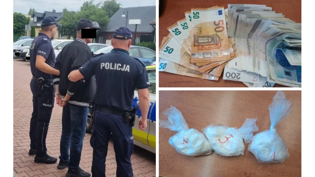 Jak informuje Komenda Powiatowa Policji w Rykach, do zatrzymania doszło w miniony czwartek. Policjanci z komisariatu w Dęblinie, działając na podstawie ustaleń operacyjnych, przeszukali mieszkanie 59-latka. Podczas przeszukania funkcjonariusze znaleźli trzy woreczki foliowe z białą, zbryloną substancją oraz gotówkę w różnych walutach, o łącznej równowartości około 20 tysięcy złotych.