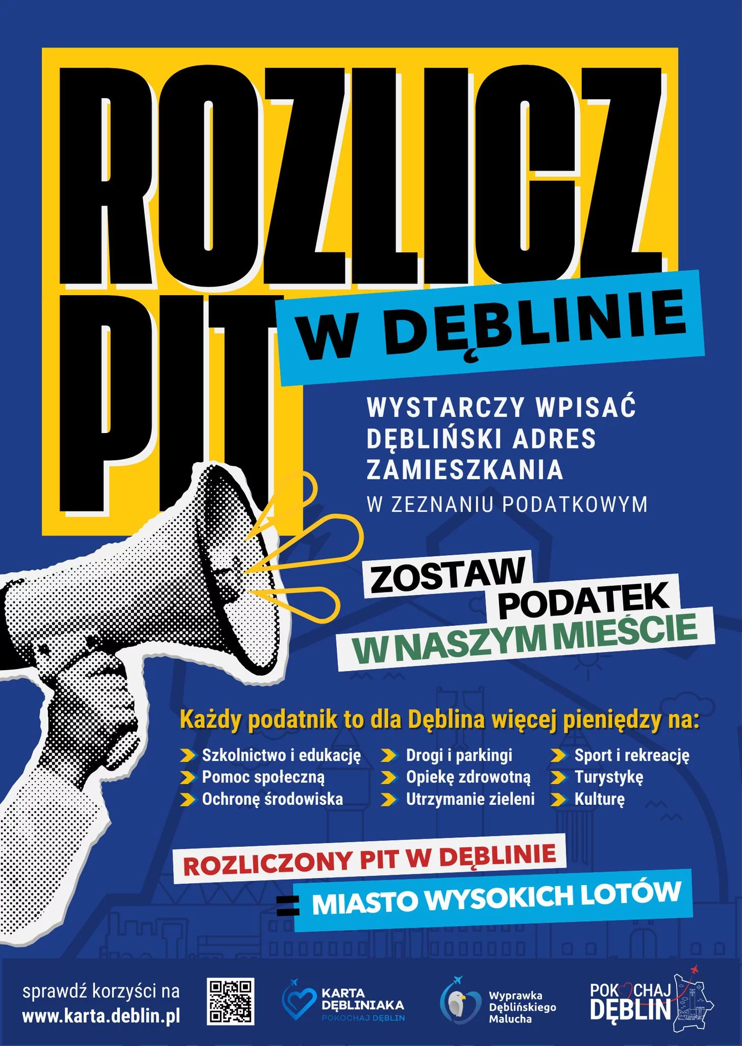 Dęblin, określany mianem „Miasta Wysokich Lotów”, zachęca mieszkańców do wspólnego budowania silnego i nowoczesnego samorządu, zaczynając od właściwego wpisu w rocznym zeznaniu podatkowym.