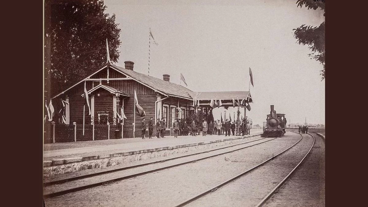Fotografia przedstawia należącą do wojska część dworca w Dęblinie. Zdjęcie wykonano 3 września 1892 roku. Tego dnia do twierdzy przybył Aleksander III, chcąc obserwować walne manewry, jakie miały być przeprowadzone w twierdzy - tak wówczas nazywało się miasto - Iwangorodzkiej. Tory do Dęblina doprowadzono w 1876 roku. Początkowo to była stacja końcowa linii z Łukowa, rok później przyłączono ją do szlaku prowadzącego przez Warszawę na wschód do Lublina i Kowla. W 1885 z kolei otworzono odnogę w kierunku Zagłębia. Fotografia znaleziona na str. bazakolejowa.pl pochodzi z rosyjskiego albumu dokumentującego wizytę.