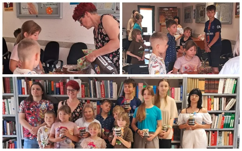 W ramach różnorodnych warsztatów zorganizowanych w drugim tygodniu wakacji w budynku głównym biblioteki przy ul. Okólnej 19, dzieci miały okazję puścić wodze fantazji i stworzyć własne... ogródki w słoikach.