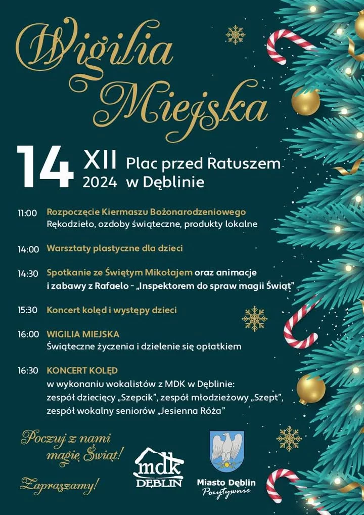 O godz. 11:00 rozpocznie się Kiermasz Bożonarodzeniowy. Będzie można zakupić: rękodzieła, ozdoby świąteczne, lokalne produkty. O godz. 14:00 warsztaty plastyczne dla dzieci. Co jeszcze czeka mieszkańców Dęblina i okolic?