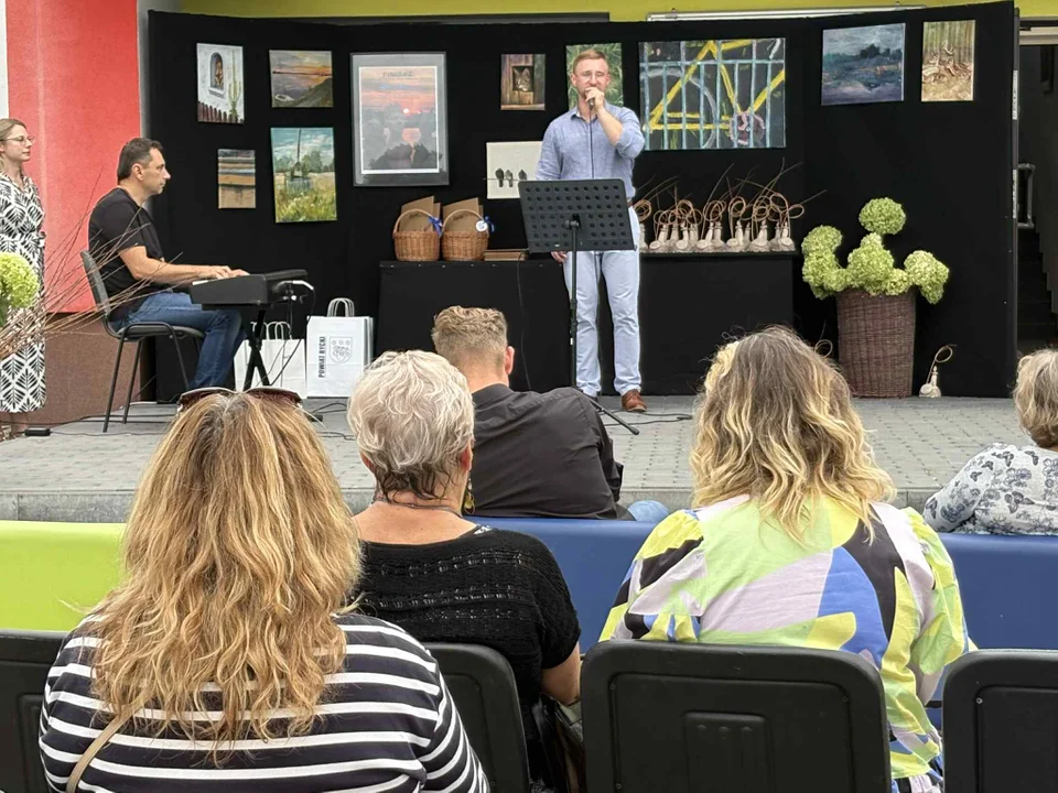 Uroczystość uświetnił koncert poezji śpiewanej w wykonaniu artystów z Pracowni Wokalnej MDK, który dopełnił nastroju tego wyjątkowego wieczoru. Delikatne dźwięki, malarskie kadry i poetyckie teksty stworzyły niezapomnianą atmosferę, łącząc sztukę, muzykę i piękno lokalnego krajobrazu.