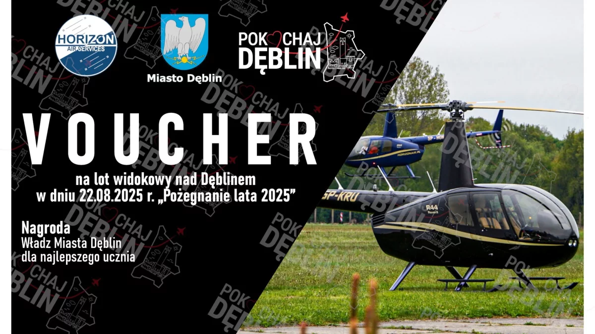 Loty helikopterem zrealizuje firma Horizon Air, która zadba o pełne bezpieczeństwo oraz wrażenia z najwyższej półki. Przeloty odbędą się już 22 sierpnia, podczas wielkiego wydarzenia plenerowego „Zakończenie Lata w Dęblinie”.