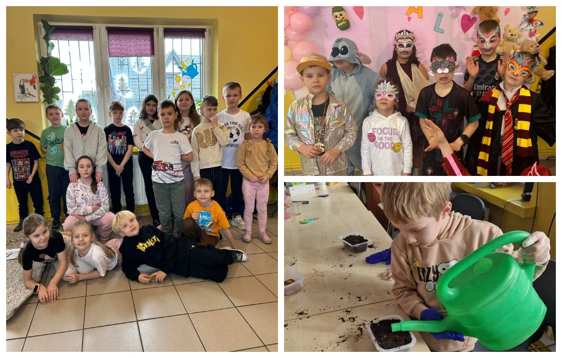 Podczas tegorocznych ferii na najmłodszych czekało wiele atrakcji. Odbył się kolorowy bal karnawałowy, który zamienił salę świetlicy w prawdziwą krainę bajkowych postaci. Dzieci mogły także wcielić się w rolę małych ogrodników. Wspólnie sadziły nasionka i uczyły się, jak dbać o rośliny. Nie zabrakło prac plastyczno-technicznych, wspólnego czytania, karaoke oraz gier i zabaw edukacyjnych rozwijających wyobraźnię i kreatywność.