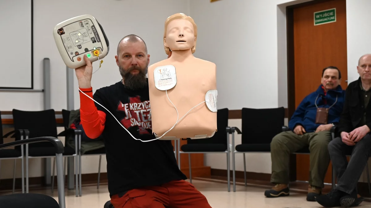 Podczas zajęć każdy mógł sprawdzić, jak prawidłowo ocenić stan poszkodowanego, prowadzić resuscytację krążeniowo-oddechową oraz używać defibrylatora AED. Instruktor pokazał, że obsługa urządzenia jest prosta i intuicyjna, a szybka reakcja świadków zdarzenia może często decydować o ludzkim życiu.