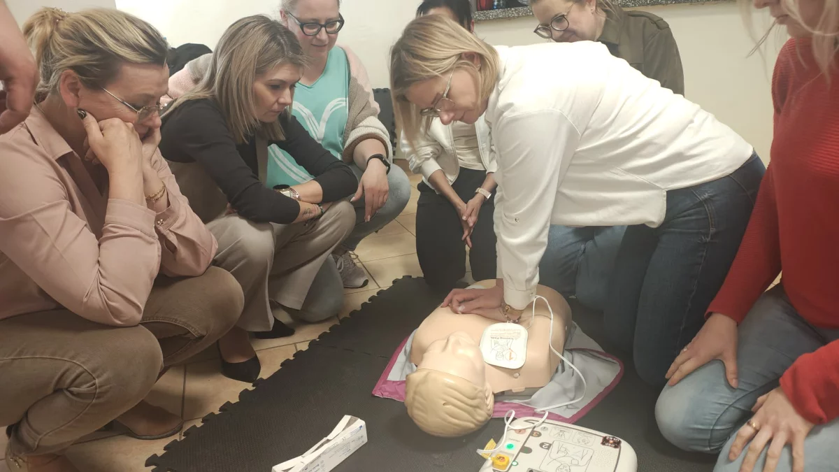 Podczas szkolenia omówiono także podstawowe zasady udzielania pierwszej pomocy, w tym rozpoznawanie sytuacji wymagających natychmiastowej reakcji oraz właściwe postępowanie do czasu przybycia służb ratunkowych. Jak podkreślali prowadzący, kluczowe znaczenie ma nie tylko dostęp do sprzętu, ale przede wszystkim wiedza i gotowość do działania.