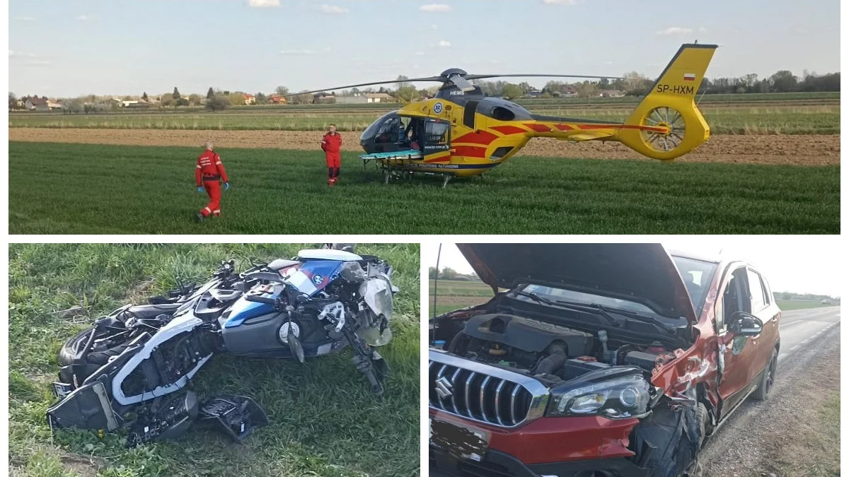 Jak wynika ze wstępnych ustaleń, 69-letni kierowca samochodu marki Suzuki pochodzący z powiatu wołomińskiego, zderzył się z 41-letnim motocyklistą jadącym BMW, mieszkańcem Warszawy. W wyniku wypadku motocyklista odniósł obrażenia ciała i został przetransportowany do szpitala śmigłowcem Lotniczego Pogotowia Ratunkowego.