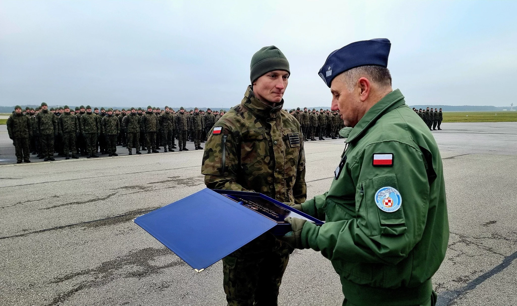 Podczas uroczystości Dowódca 4SLSz wyróżnił jednego z żołnierzy- technika obsługi samolotów M346 - listem gratulacyjnym za wzorowe wykonywanie obowiązków służbowych, doświadczenie, wiedzę oraz wysoki poziom zaangażowania w codzienną służbę.