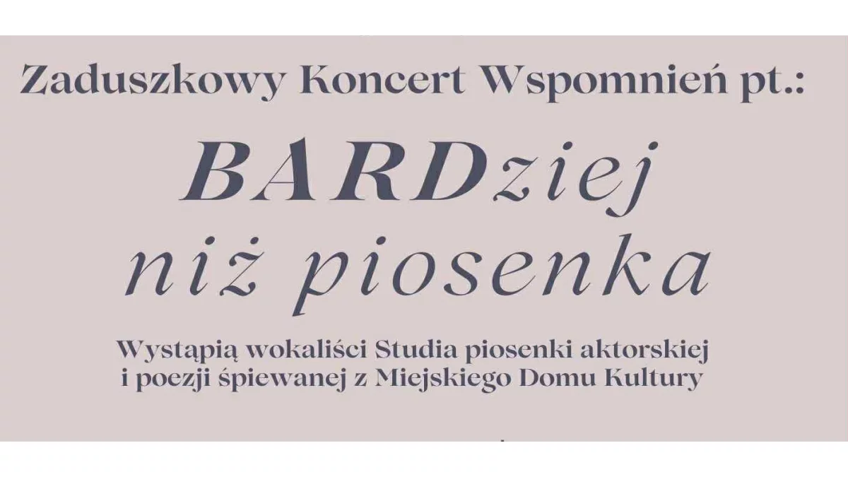 Na scenie wystąpią wokaliści Studia Piosenki Aktorskiej i Poezji Śpiewanej działającego przy Miejskim Domu Kultury. Publiczność usłyszy interpretacje utworów znanych bardów, poetyckie piosenki i refleksyjne kompozycje, które jak co roku pozwolą zatrzymać się na chwilę i wspomnieć tych, którzy odeszli, ale pozostali w naszej pamięci.