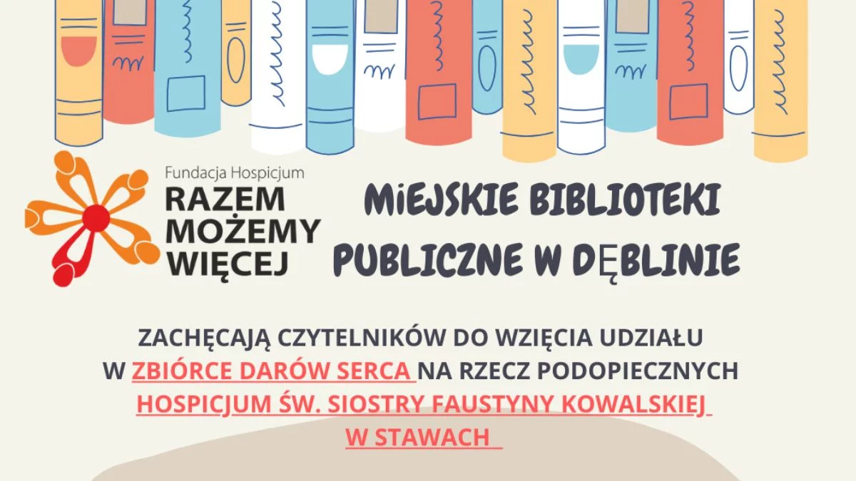 Dary można przynosić do wybranych placówek bibliotecznych w Dęblinie w godzinach ich pracy. Akcja potrwa do 20 maja.