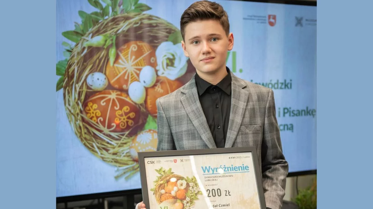 W kategorii "pisanka wielkanocna wykonana techniką współczesną" wyróżnienie otrzymał uczeń Szkoły Podstawowej im. Polskich Noblistów w Kłoczewie, Rafał Czmiel. Jego praca zachwyciła komisję konkursową, a sama nagroda jest dowodem na jego ogromny talent i zaangażowanie w rozwijanie swojej pasji artystycznej.
