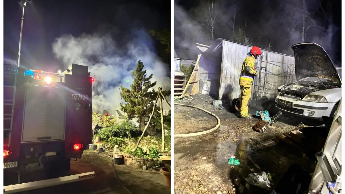 Jak poinformował Jarosław Lasek, młodszy brygadier i rzecznik prasowy PSP w Rykach, pierwsze zgłoszenie dotyczyło pożaru na terenie jednej z posesji. - W momencie przybycia pierwszego zastępu z jednostki OSP Nowe Zadybie stwierdzono, że pali się blaszany garaż, części samochodowe oraz stojący obok samochód osobowy marki Skoda Octavia - przekazał.