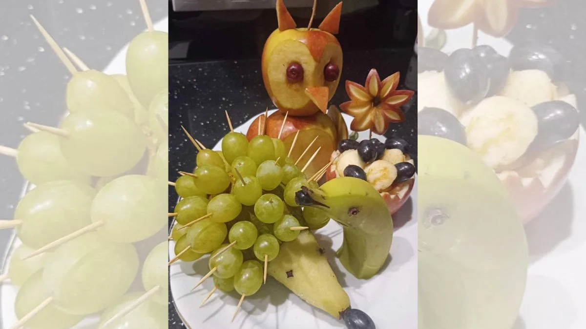 Jedną z form tego wsparcia były właśnie warsztaty carvingu, czyli sztuki rzeźbienia w owocach i warzywach. Podczas cyklu zajęć uczestnicy rozwijali swoje zdolności manualne, uczyli się precyzji i twórczego podejścia do pracy z naturalnymi materiałami. Powstały niezwykłe kompozycje – od łabędzi z jabłek po wzory z arbuza i melona. Warsztaty prowadziła Bożena Śmiałowska, która z ogromnym zaangażowaniem dzieliła się wiedzą i doświadczeniem, wspierając uczestników na każdym etapie nauki. Zajęcia przebiegały w serdecznej, twórczej atmosferze i cieszyły się dużym zainteresowaniem.