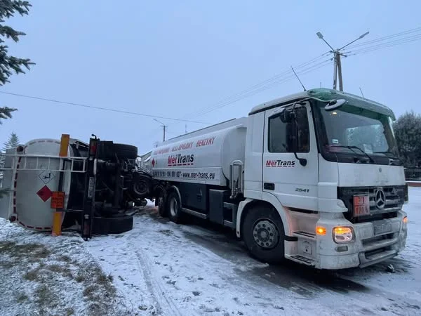 Dzisiaj rano (14.02) na łuku drogi powiatowej Trojanów - Żelechów, w Woli Zadybskiej doszło do wypadku cysterny przewożącej paliwo.