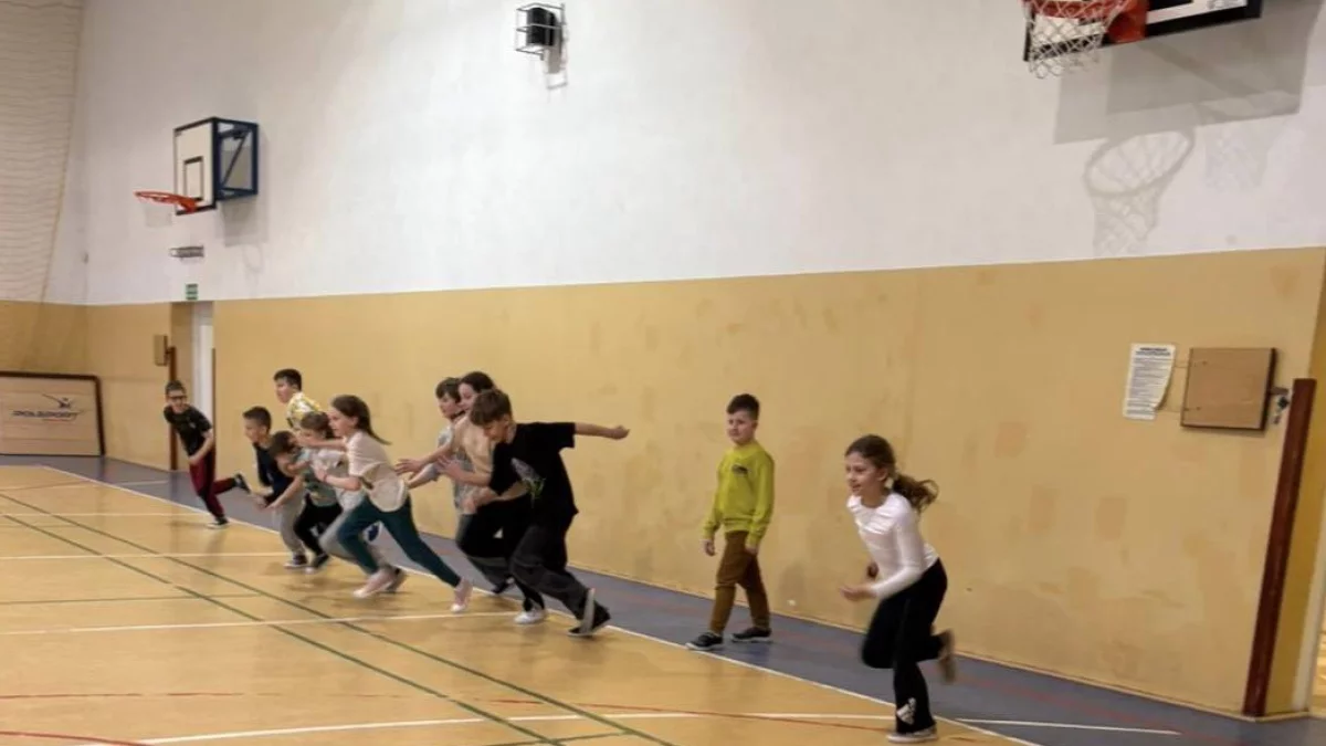Po części edukacyjnej przyszedł czas na ruch. Na sali gimnastycznej odbyły się zajęcia sportowe, podczas których dzieci brały udział w biegach, rzutach i różnych ćwiczeniach ruchowych. Energia i zaangażowanie uczestników, jak zawsze, były na bardzo wysokim poziomie.