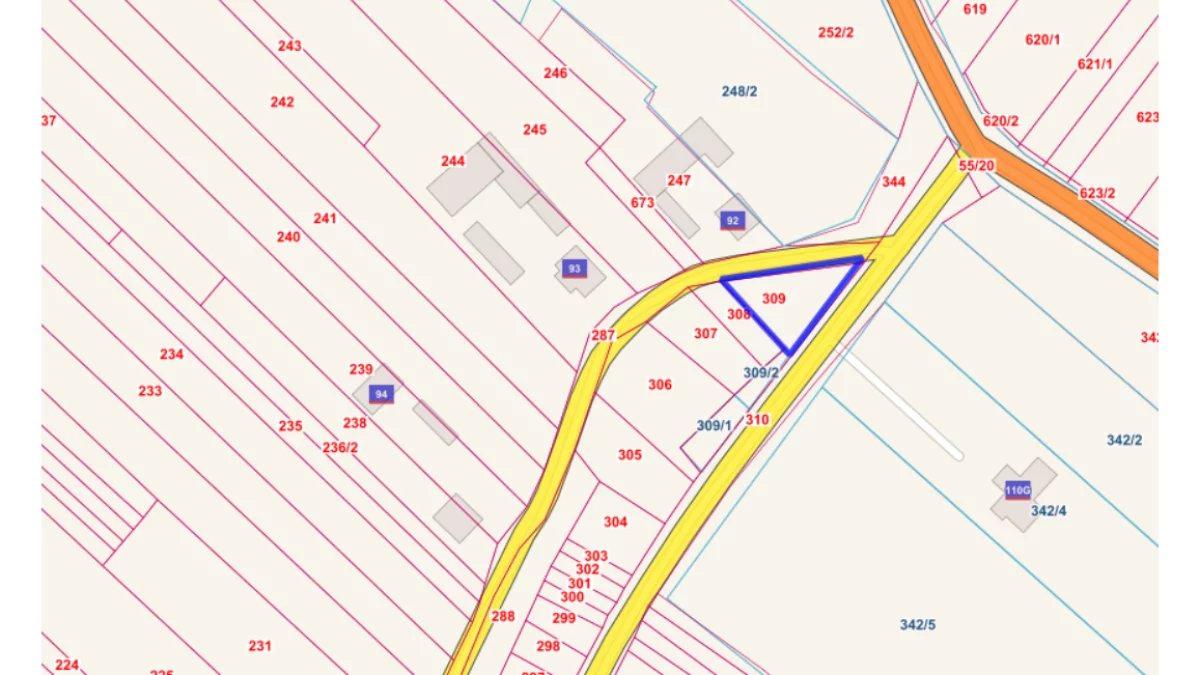 Numer geodezyjny działki to 309/3, powierzchnia 554 m2. Przeznaczenie działki: w części teren zabudowy zagrodowej i w części poszerzenie drogi gminnej. Cena nieruchomości: 13 500 zł.