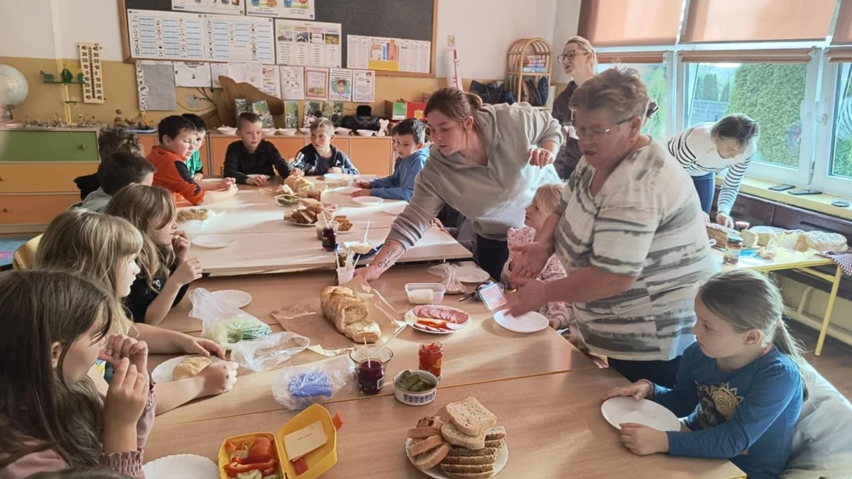 W ramach obchodów Dnia Chleba, mamy uczniów upiekły pyszny, domowy chleb, który wprowadził wszystkich w atmosferę tradycji i smaków naszej kuchni. Następnie dzieci przygotowały zdrowe kanapki, wykorzystując masło, sery, dżemy, wędliny oraz świeże warzywa. Wśród atrakcji nie zabrakło również degustacji różnych rodzajów pieczywa, co pozwoliło uczniom poszerzyć swoje kulinarne horyzonty.