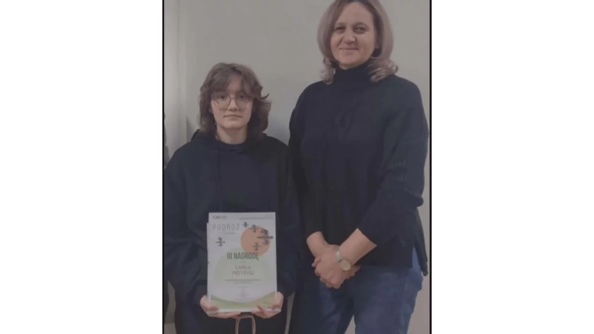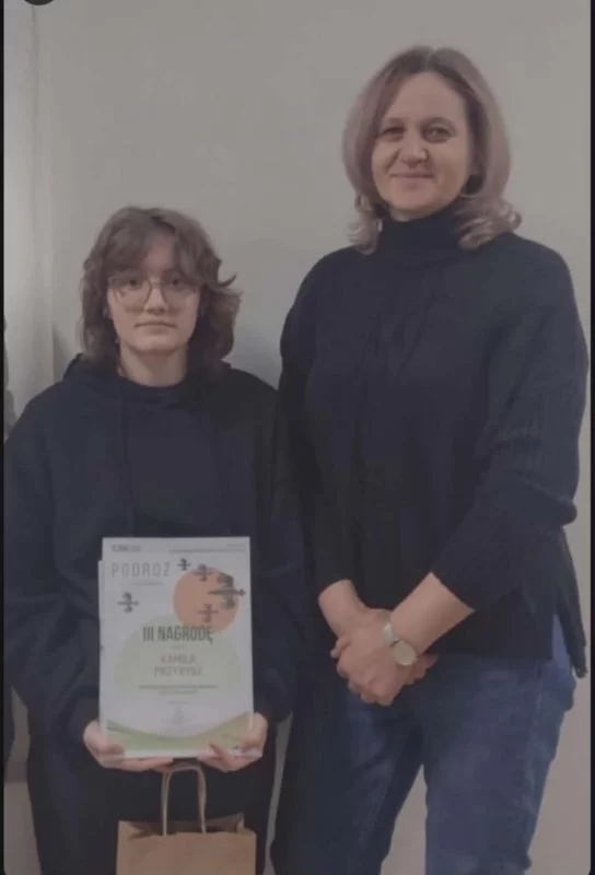 Informujemy, że uczennica klasy VIII, Kamila Przybysz z SP im. Orła Białego z Oddziałami Przedszkolnymi w Czernicu, zdobyła tytuł laureata i zajęła III miejsce w XXI Wojewódzkim Konkursie Literackim „Podróż”, organizowanym przez Centrum Spotkania Kultur w Lublinie.