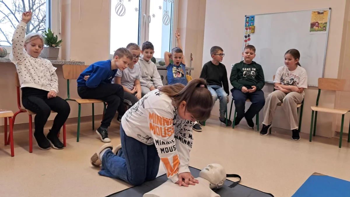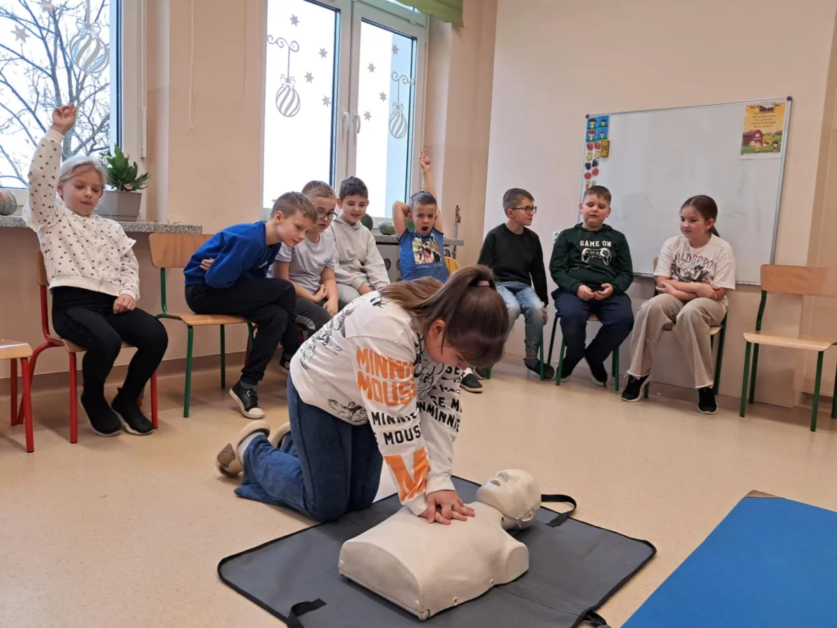 We wtorek, 2 grudnia uczniowie klasy trzeciej Szkoły Podstawowej w Goździe wzięli udział w praktycznych zajęciach z pierwszej pomocy, które miały na celu przypomnienie najważniejszych zasad reagowania w sytuacjach zagrożenia życia i zdrowia. Pod okiem doświadczonych instruktorów, dzieci miały okazję poznać numery alarmowe oraz krok po kroku nauczyć się prawidłowego przebiegu resuscytacji krążeniowo-oddechowej (RKO).