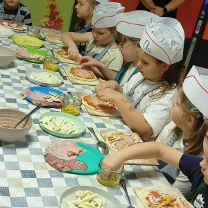 Podczas wizyty dzieci wzięły udział w warsztatach robienia pizzy. Każde dziecko samodzielnie przygotowało swoją pizze, układając na niej ulubione składniki, a następnie obserwowało, jak wypieka się ona w prawdziwym piecu do pizzy. W czapkach kucharskich i fartuszkach mali kucharze z dumą tworzyli swoje przysmaki i czuli się jak w prawdziwej restauracji.