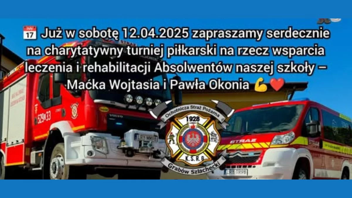 Już w najbliższą sobotę, 12 kwietnia, Ochotnicza Straż Pożarna w Grabowie Szlacheckim zaprasza na charytatywny turniej piłkarski na rzecz leczenia i rehabilitacji Macieja Wojtasia i Pawła Okonia.