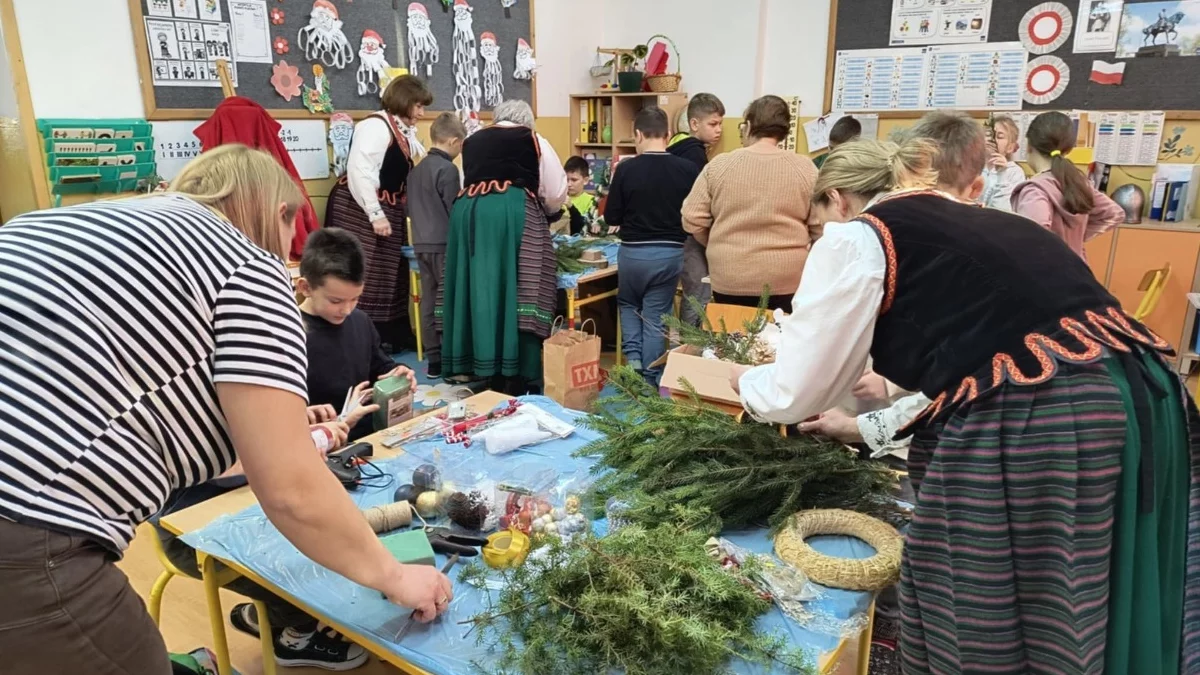 We wtorek, 16 grudnia w klasach I–III w Szkole Podstawowej w Niedźwiedziu odbyły się warsztaty wykonywania stroików bożonarodzeniowych. Zajęcia prowadził „Zespół Śpiewaczy Babeczki” z Zawitały, we współpracy z mamami uczniów.