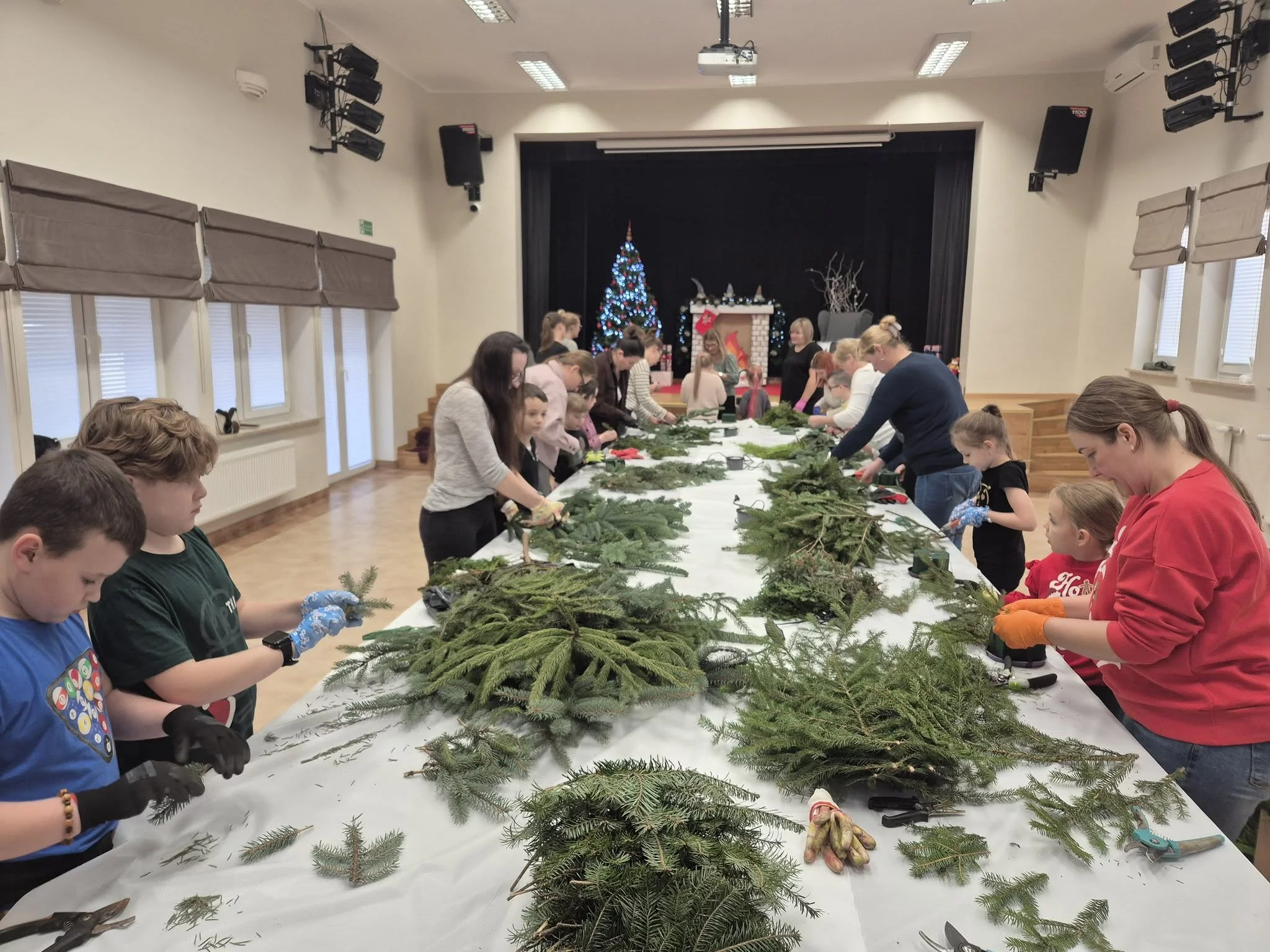 Spotkanie okazało się nie tylko twórczą zabawą, ale także doskonałą okazją do zacieśnienia więzi rodzinnych. Wspólnie spędzony czas przy tworzeniu ozdób świątecznych stanowił dla dzieci najpiękniejszy prezent – moment pełen radości, wzajemnej troski i zaangażowania. Dzieci i ich rodziny wykonały różnorodne stroiki, które z pewnością ozdobią domy i wprowadzą świąteczny klimat.