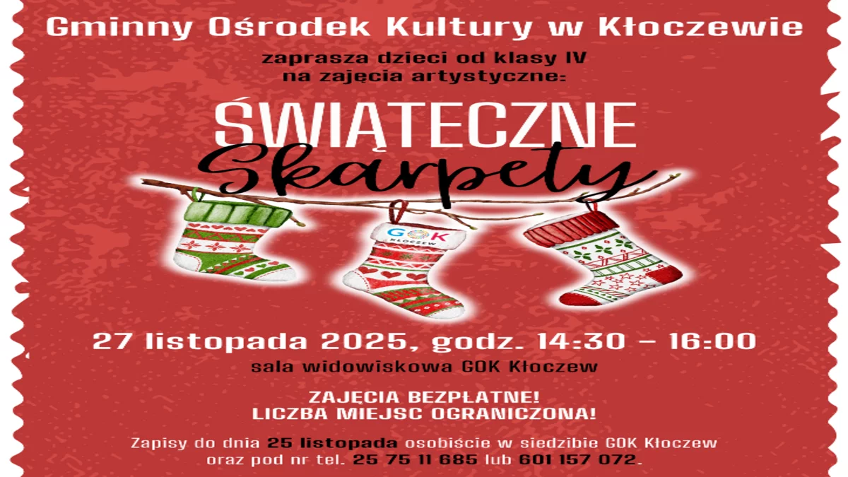 Zgłoszenia przyjmowane są do 25 listopada w siedzibie GOK Kłoczew oraz telefonicznie pod numerami: 25 75 11 685 lub 601 157 072.