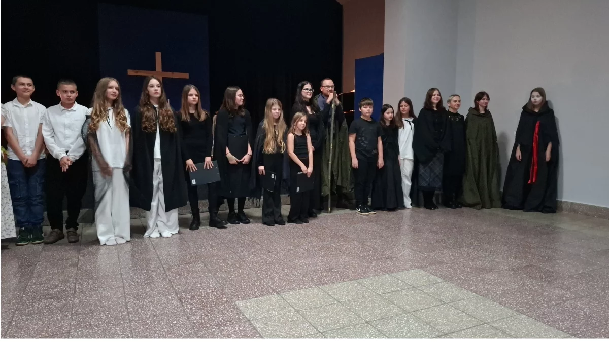 Młodzi aktorzy zaprezentowali wybitne kreacje, wykazując się ogromnym zaangażowaniem i wrażliwością artystyczną. Ich gra była pełna emocji i starannie przemyślana, co wywarło duże wrażenie na licznie zgromadzonych mieszkańcach. Publiczność nagrodziła młodych artystów owacjami na stojąco, wyrażając tym samym uznanie dla ich talentu i pracy.