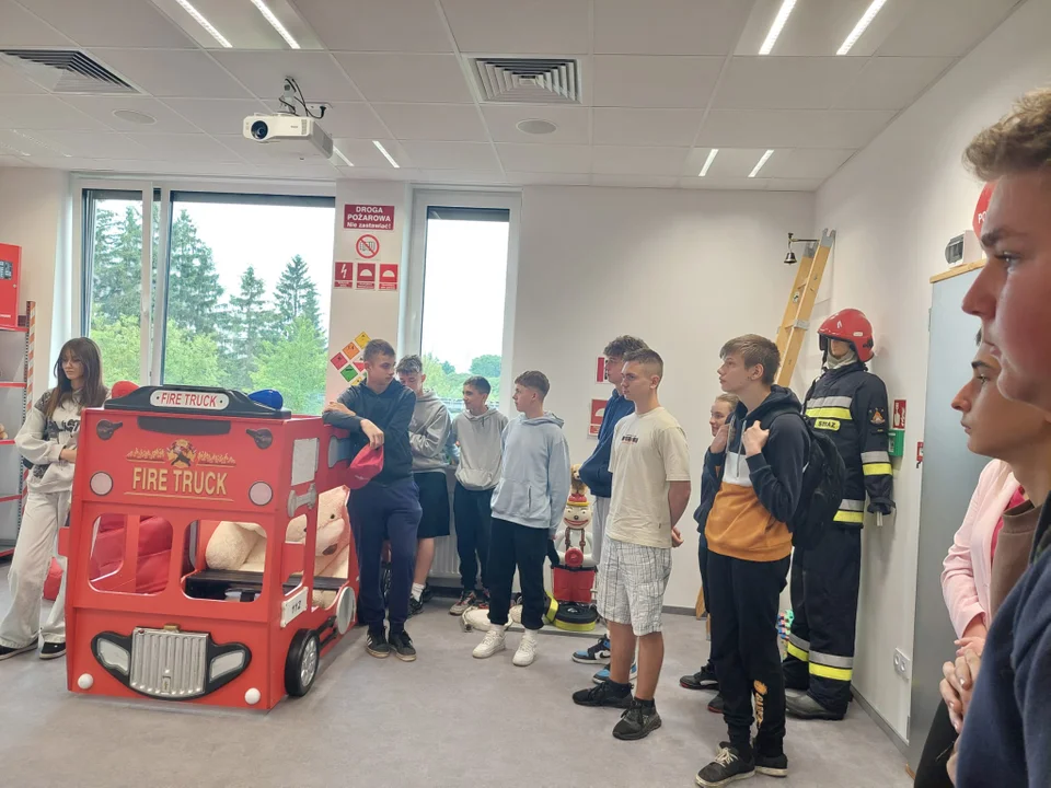 Wycieczka rozpoczęła się w Komendzie Państwowej Straży Pożarnej, gdzie młodzież została serdecznie przyjęta przez zastępcę komendanta. Uczniowie poznali kulisy codziennej pracy strażaków, ich obowiązki, tryb pełnienia służby oraz procedury reagowania na zgłoszenia. Ogromne wrażenie zrobił nowoczesny sprzęt ratowniczy, w tym wozy gaśnicze i specjalistyczne wyposażenie. Uczestnicy mieli nawet okazję przymierzyć hełm strażacki i samodzielnie posługiwać się wężem gaśniczym. Strażacy opowiedzieli o różnorodnych akcjach, w których biorą udział – od gaszenia pożarów, przez ratownictwo drogowe, po działania w sytuacjach kryzysowych, takich jak wichury czy zagrożenia chemiczne.
