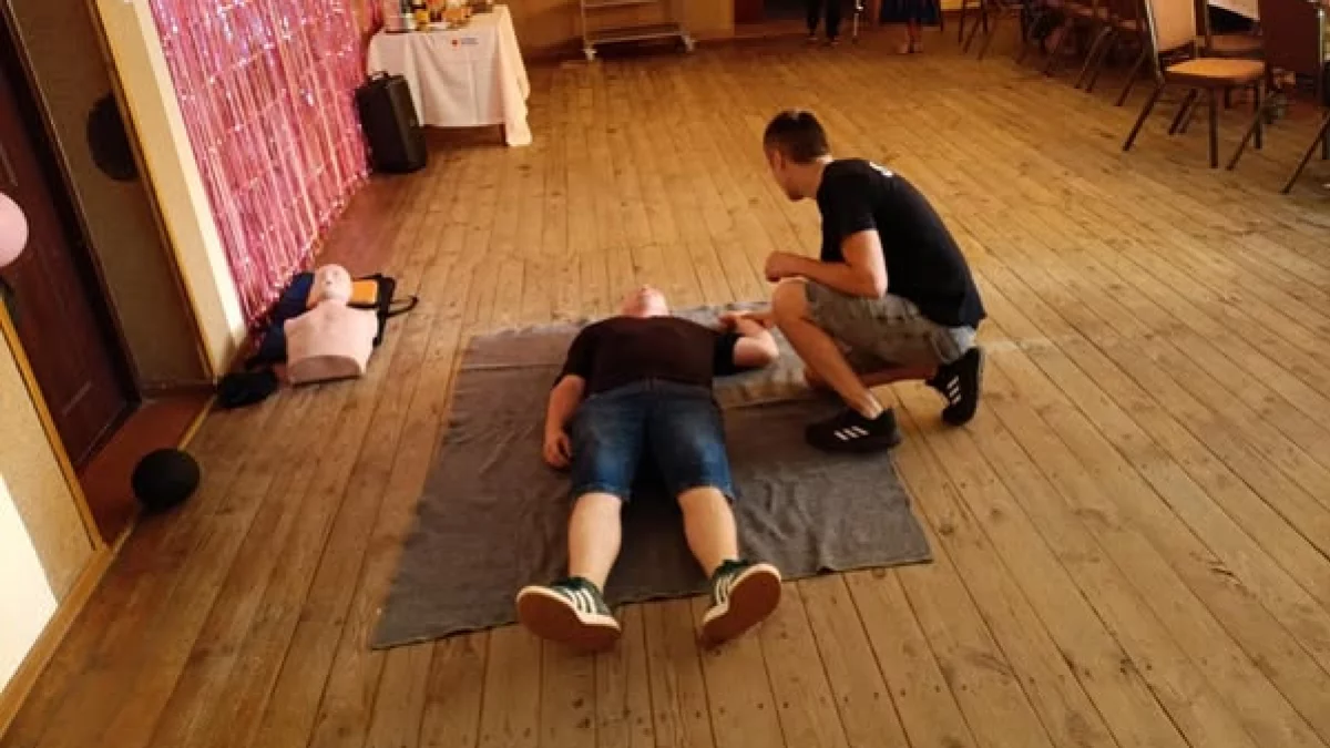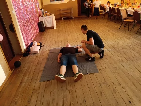 Podczas pokazu zaprezentowano również sposób korzystania z automatycznego defibrylatora zewnętrznego (AED) oraz udzielania pomocy w przypadku zadławień i upadków. Uczestnicy mieli okazję zadawać pytania oraz przećwiczyć zdobyte umiejętności pod okiem wykwalifikowanych druhów.