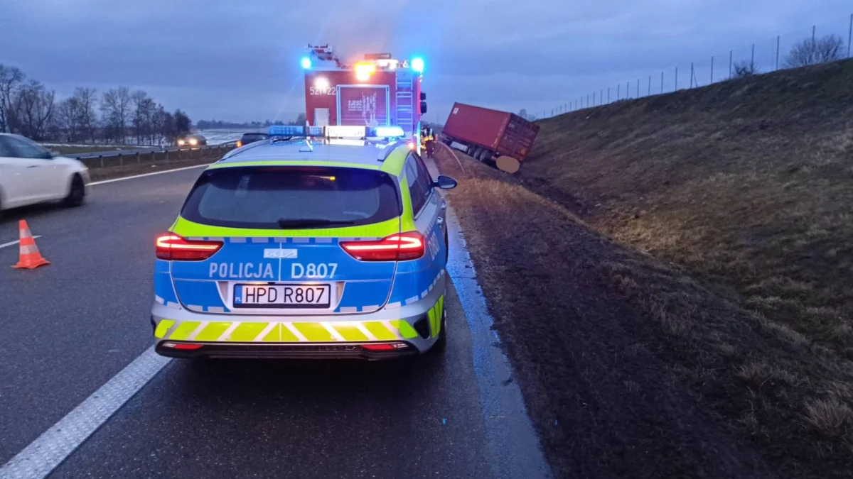 Na miejscu pracują służby drogowe, które zabezpieczają teren i prowadzą działania mające na celu szybkie usunięcie ciężarówki z rowu. Kierowcy muszą liczyć się z utrudnieniami i czasowymi blokadami ruchu w tym rejonie.