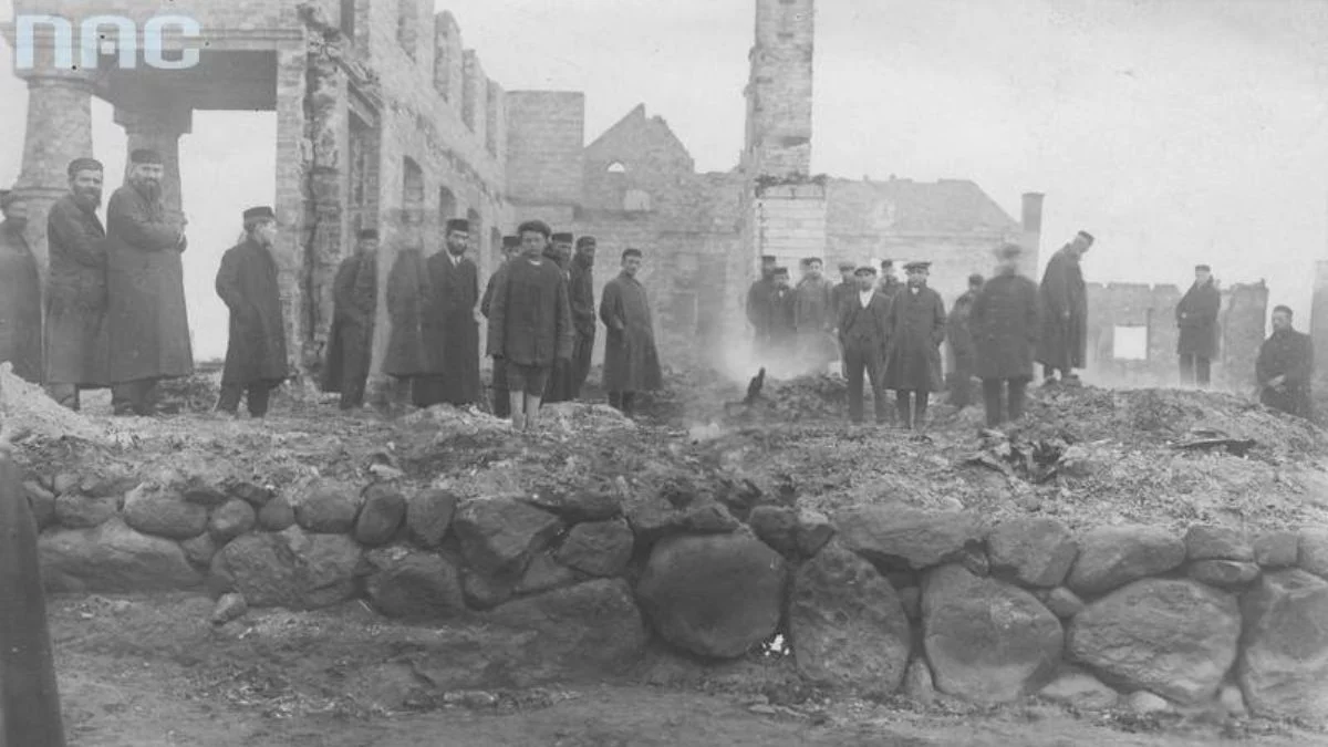 Kiedy w 1819 r. spłonęła pierwotna synagoga, szybko postanowiono o budowie nowej. Liderem projektu był właśnie reb Baruch. Zwrócił on uwagę na werset z Tory: "I przygotujesz też deski na przybytek z drzewa akacjowego i ustawisz je pionowo" (Księga Wyjścia 26:15). Według jego instrukcji dębowe słupy z dębu (w Polsce nie rośnie odmiana akacji pozwalająca na taki manewr...) do 10 metrów wysokości stawiono właśnie "w sztorc". Podobno nigdy w żadnej z desek nie zagnieździły się robaki. Omijały ją też wszystkie pożary aż do feralnych dni w czasie obchodów Paschy w 1925 r., kiedy spłonęła do fundamentów. Nie znamy informacji o jej wystroju i wyposażeniu, z wielu jednak wzmianek o chronicznym ubóstwie wiernych, a nawet rabinów możemy domniemywać, że nie było szczególnie okazałe.