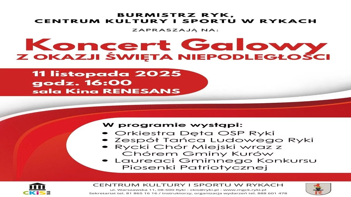 Na scenie zaprezentują się artyści z regionu: Orkiestra Dęta OSP Ryki, Zespół Tańca Ludowego Ryki oraz Rycki Chór Miejski występujący wspólnie z Chórem Gminy Kurów. Publiczność będzie mogła również obejrzeć występ laureatów Gminnego Konkursu Piosenki Patriotycznej.