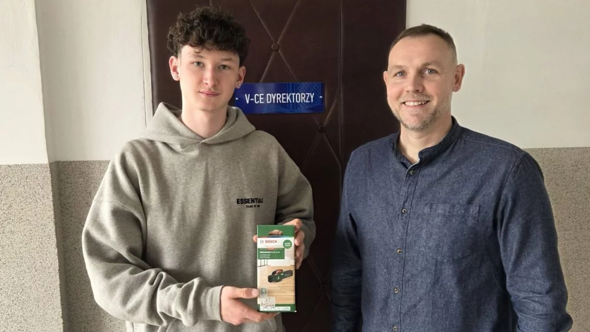 Za swoje osiągnięcie uczeń otrzymał nagrodę ufundowaną przez firmę Bosch - poziomicę laserową o wartości 205 zł. To już kolejne wyróżnienie dla młodego adepta energetyki odnawialnej, który konsekwentnie utrzymuje wysoki poziom w kolejnych sprawdzianach wiedzy.