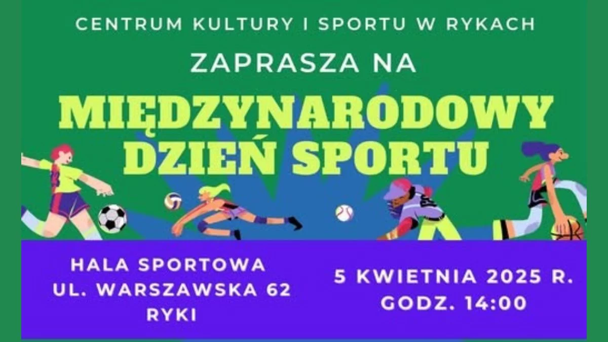 Międzynarodowy Dzień Sportu odbędzie się 5 kwietnia 2025 r. w Hali Sportowej w Rykach (ul. Warszawska 62).