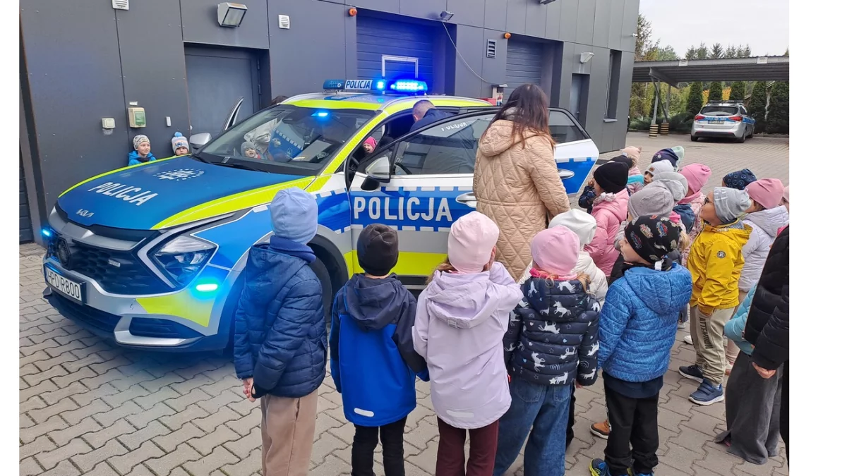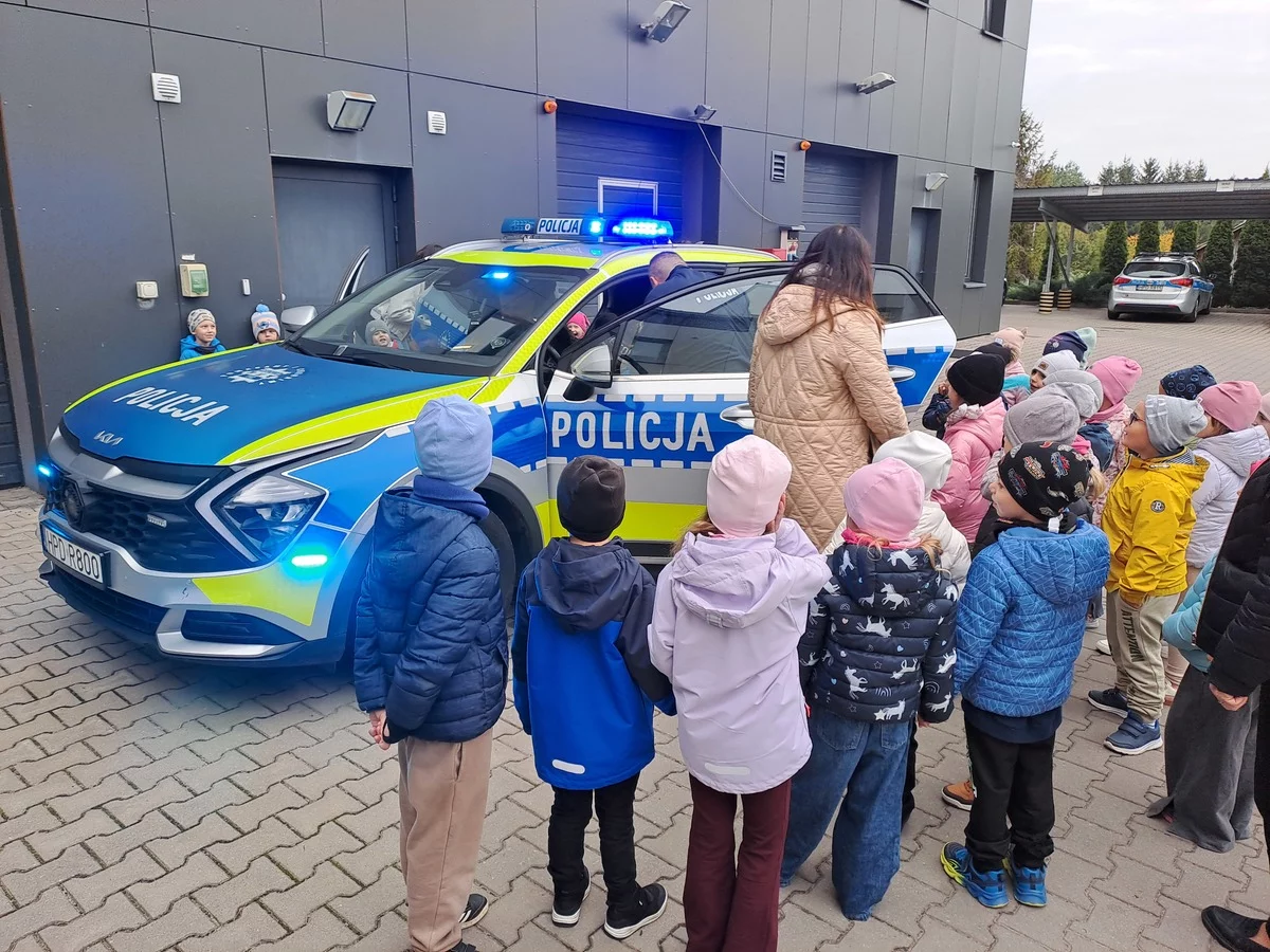 Nie zabrakło również największej atrakcji wizyty: prezentacji policyjnego sprzętu i wyposażenia. Przedszkolaki mogły z bliska zobaczyć radiowozy, zapoznać się z ich wyposażeniem i usłyszeć sygnały dźwiękowe pojazdów uprzywilejowanych. Duże zainteresowanie wzbudziły też elementy umundurowania oraz sprzęt wykorzystywany w codziennej służbie.
