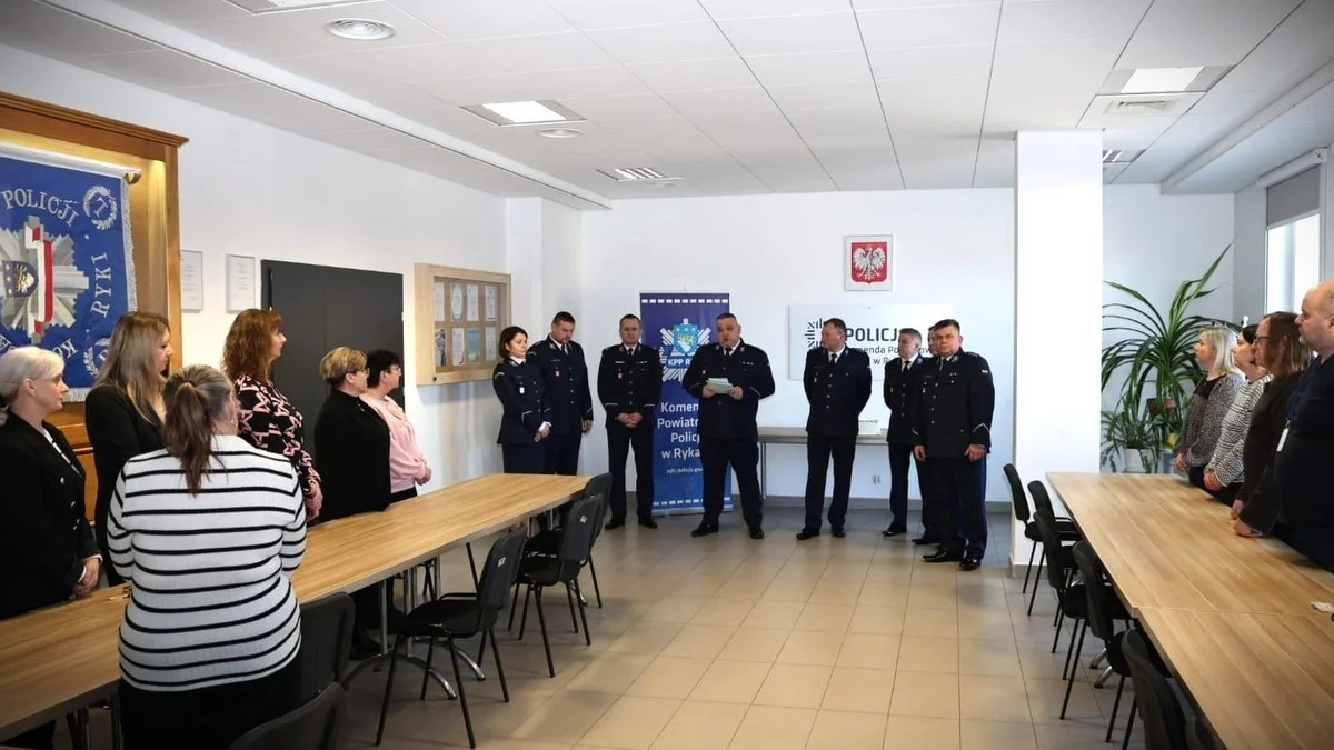 Z tej okazji w sali odpraw Komendzie Powiatowej Policji w Rykach odbyło się uroczyste spotkanie z udziałem kierownictwa jednostki oraz pracowników cywilnych ryckiej komendy i Komisariatu Policji w Dęblinie.