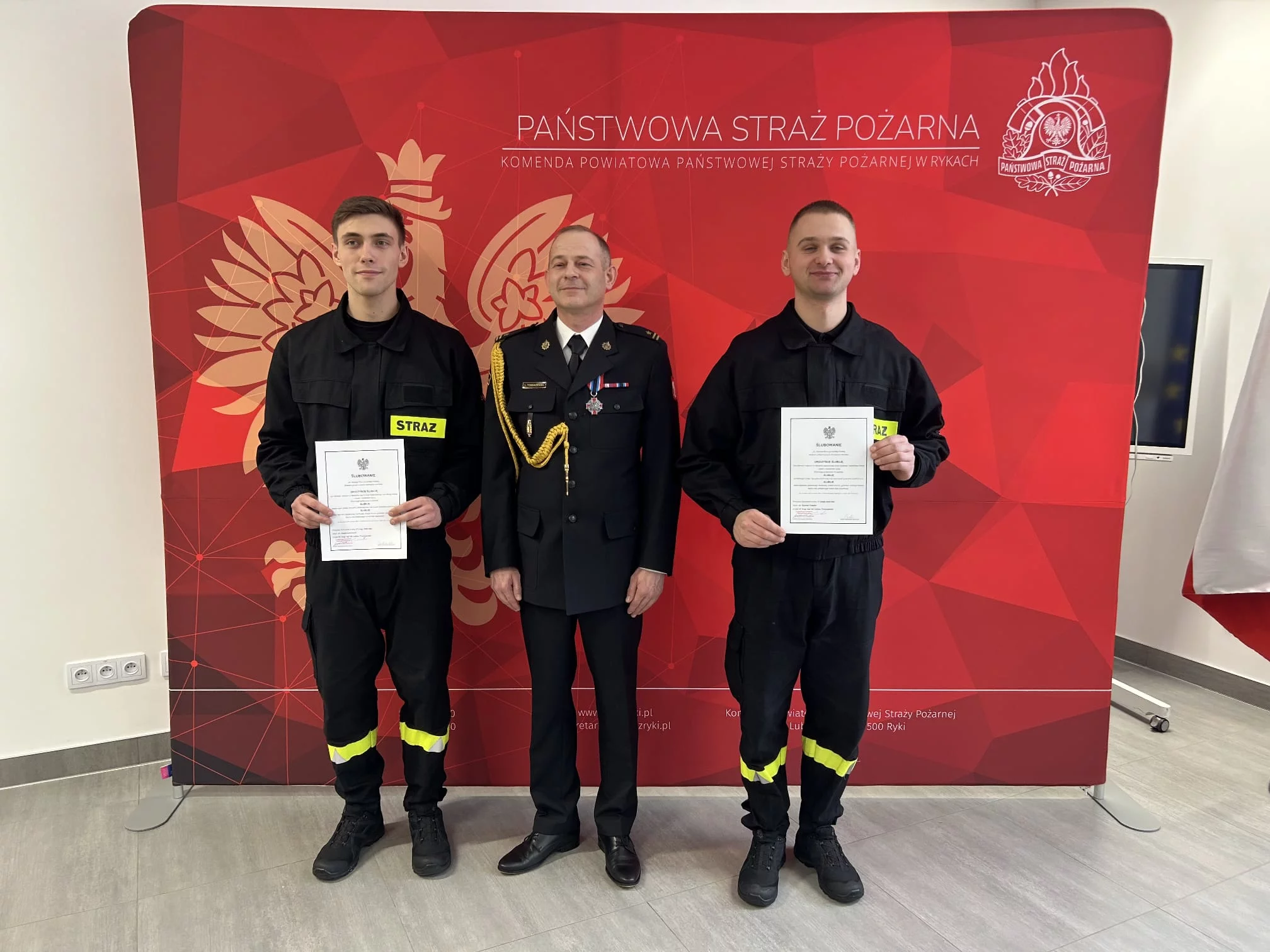 W obecności kadry dowódczej oraz strażaków pełniących służbę w jednostce rotę ślubowania złożyli Szymon Prządka oraz Paweł Kowalewski, oficjalnie rozpoczynając swoją drogę w strukturach Państwowej Straży Pożarnej.