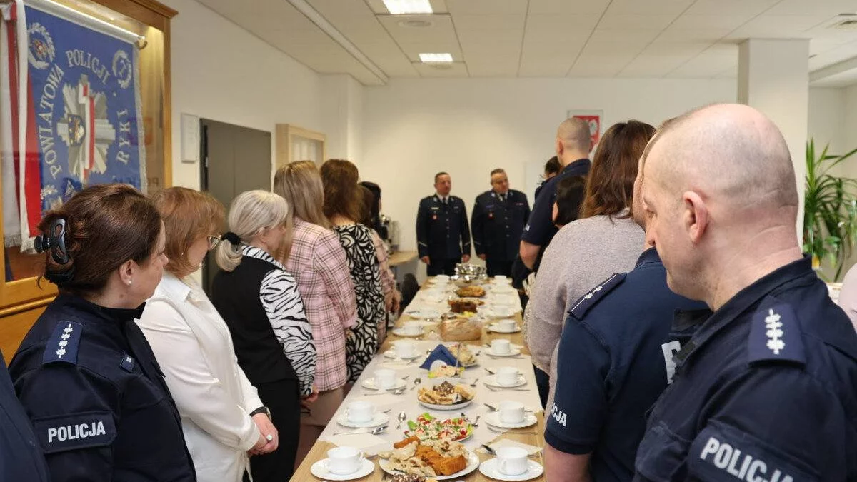 W Komendzie Powiatowej Policji w Rykach odbyło się uroczyste spotkanie z okazji zbliżających się Świąt Wielkanocnych. W wydarzeniu uczestniczyła kadra kierownicza jednostki, funkcjonariusze oraz pracownicy cywilni.