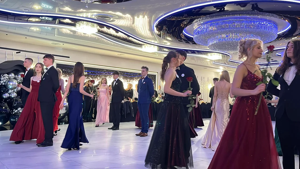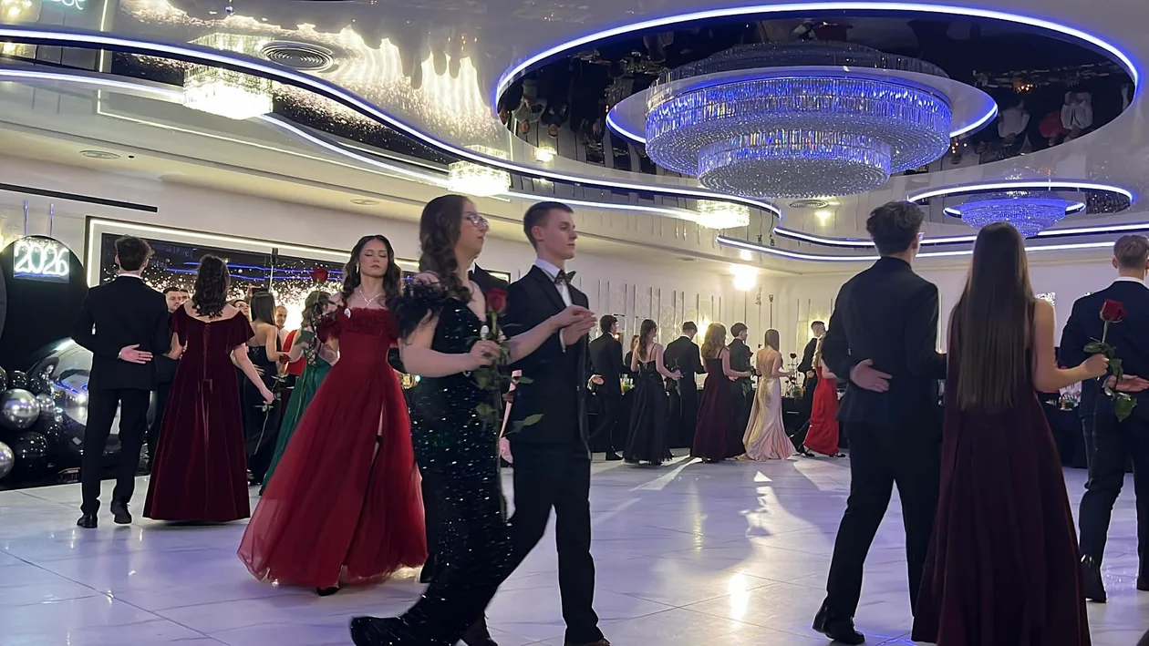 Wydarzenie jest w toku. Po części oficjalnej trwa zabawa taneczna przy oprawie muzycznej przygotowanej na potrzeby wieczoru. Na miejscu pracują fotografowie i operatorzy wideo, rejestrując przebieg studniówki.