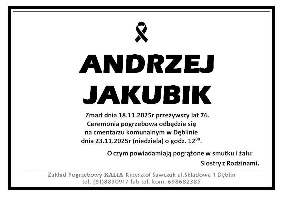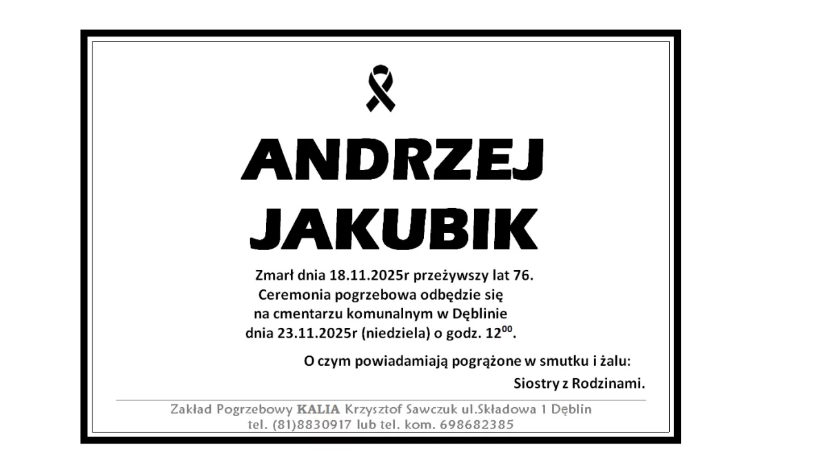 ZMARLI18 listopada zmarł Andrzej Jakubik. Przeżył 76 lat.