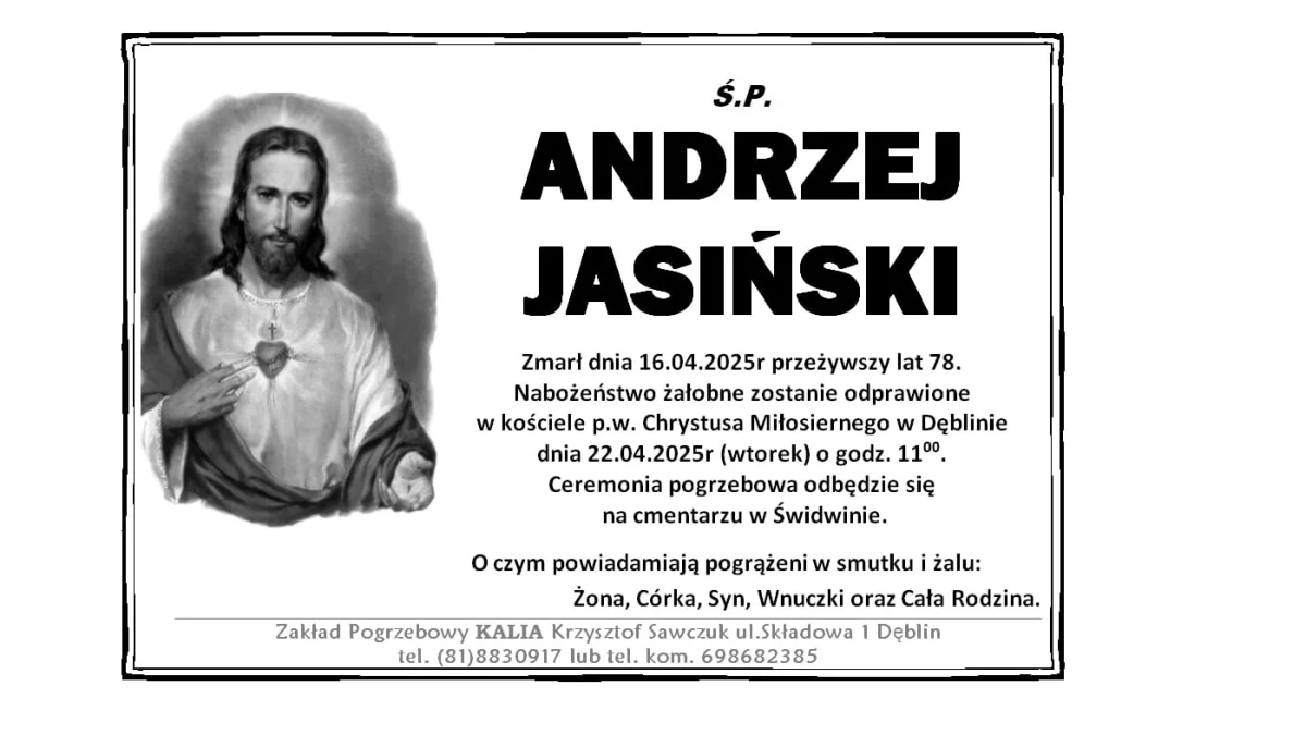 ZMARLI16 kwietnia zmarł Andrzej Jasiński. Przeżył 78 lat.